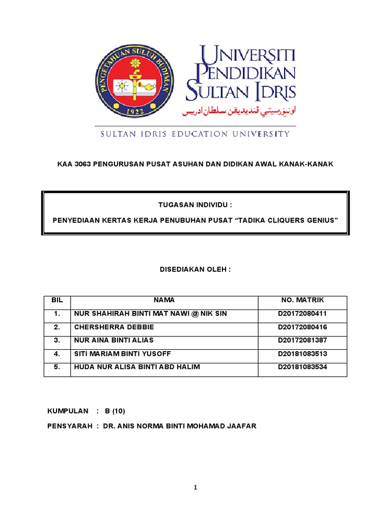 Draft Kertas Kerja Penubuhan Tadika Group 10 Pdf